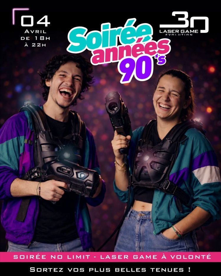 Pour célébrer les 30 ans de la marque, nous vous préparons une soirée exceptionnelle placée sous le signe des années 90 ! 🎉 Date : Samedi 04 Avril Horaire : de 18h à 22h Laser Game Evolution Mons Imagix Session illimitée pendant 4 heures Pendant toute la soirée Profitez de parties de laser game illimitées…